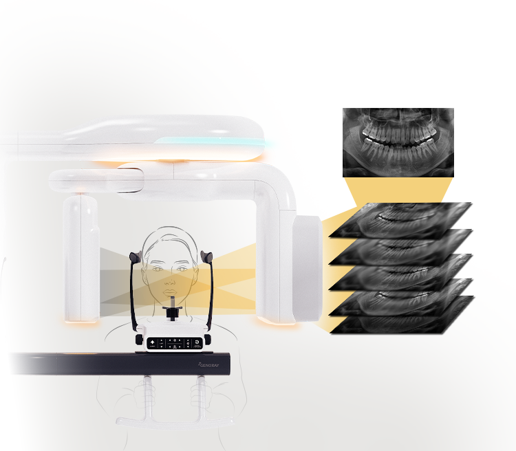 Genoray's patented mechanical design delivers Cephalo images with minimal distortion(applicable to GT300-C).